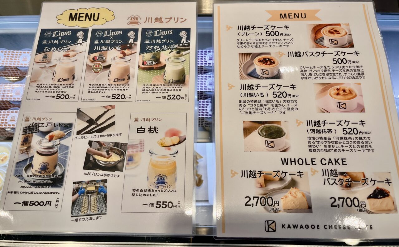 その他にも、クリームチーズをたっぷり使いチーズ本来の旨味を引き立てた「川越チーズケーキ(プレーン)」や、高温で焼き香ばしさを引き立たせた「川越バスクチーズケーキ」も販売されておりました。