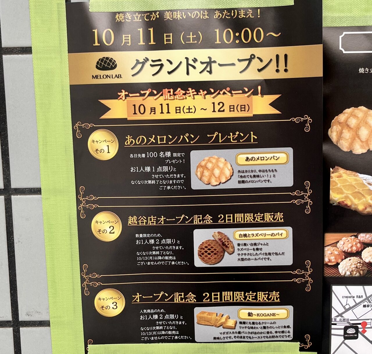 【越谷市】外はサクサク、中はもちもち♪メロンパン専門店「メロンラボ」が越谷駅西口近くに10月11日オープンするようです!