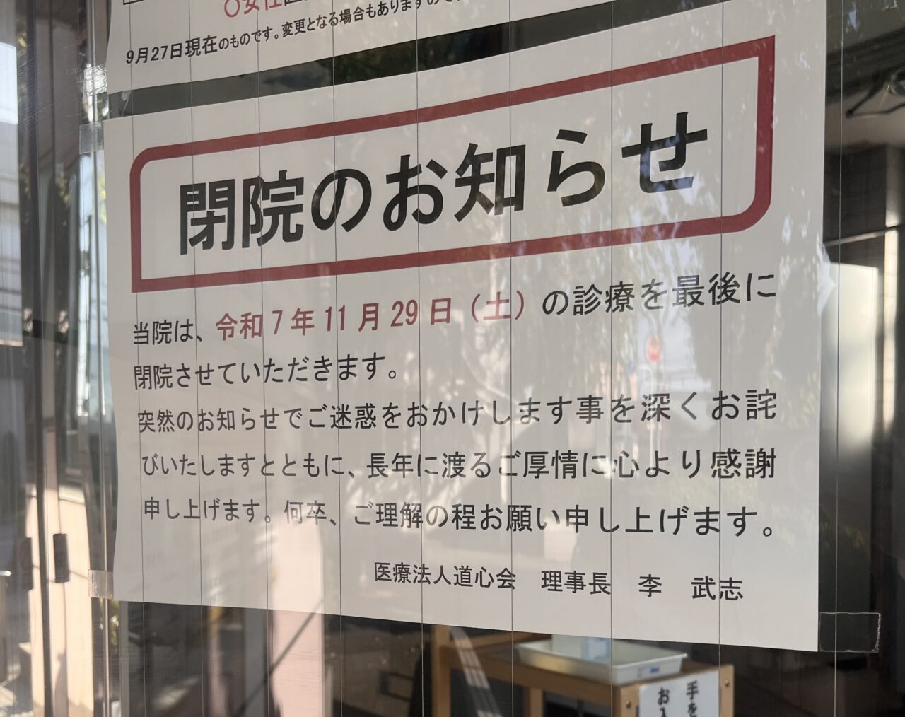 いつも混雑している人気のクリニックなので、通われている方も多いと思います。閉院となってしまうのは残念ですね。