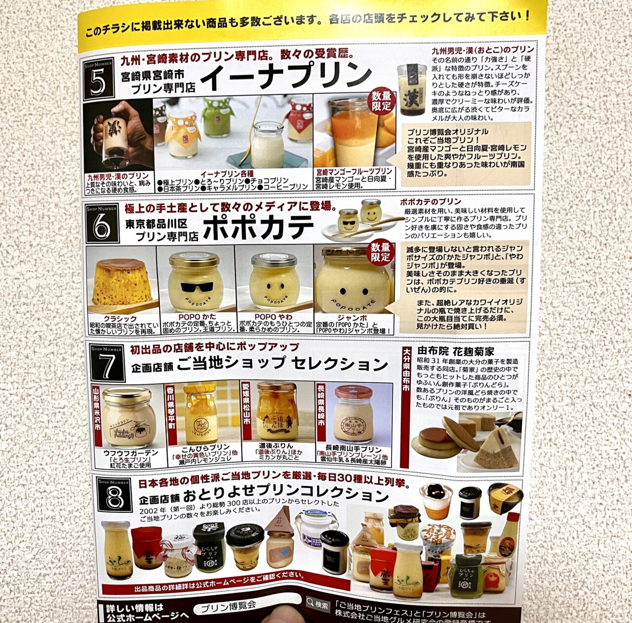 「プリン博覧会」はプリン好きのためのプリンの祭典で、各地から出店するゲストプリンブースと、全国各地から30種類を超えるご当地プリンが集う「おとりよせプリンコレクション」を筆頭に、合計8店舗による総勢80種を超える多種多様なプリンを楽しめるイベントです。