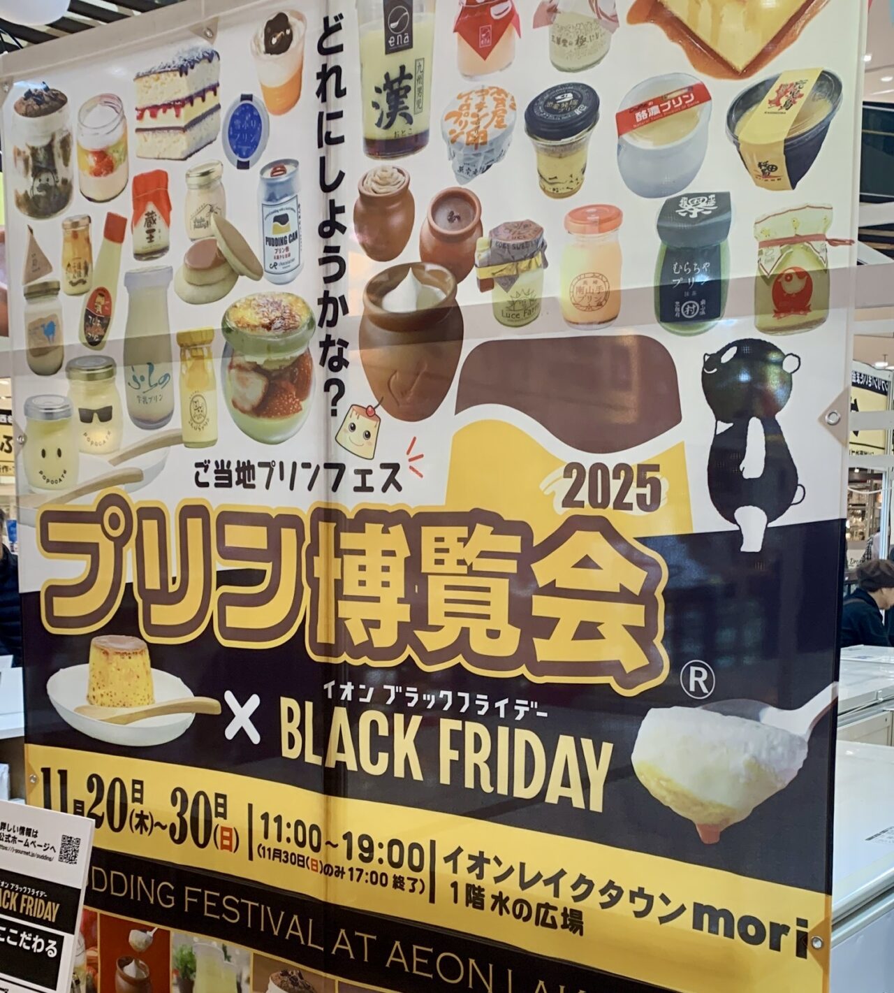 大人気のご当地プリンフェス「プリン博覧会2025×BLACK FRIDAY」が2025年11月20日(木)~11月30日(日)の期間中、イオンレイクタウンmori 1階 水の広場で開催中です!
