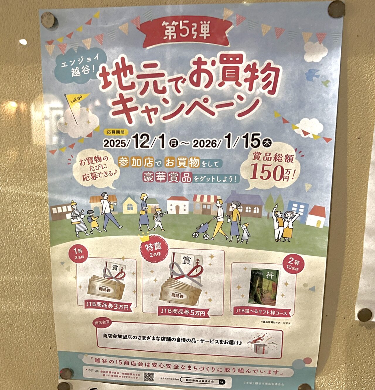 2025年12月1日(月)から2026年1月15日(木)までの期間中「第5弾 エンジョイ越谷! 地元でお買い物キャンペーン」が開催されるようです!