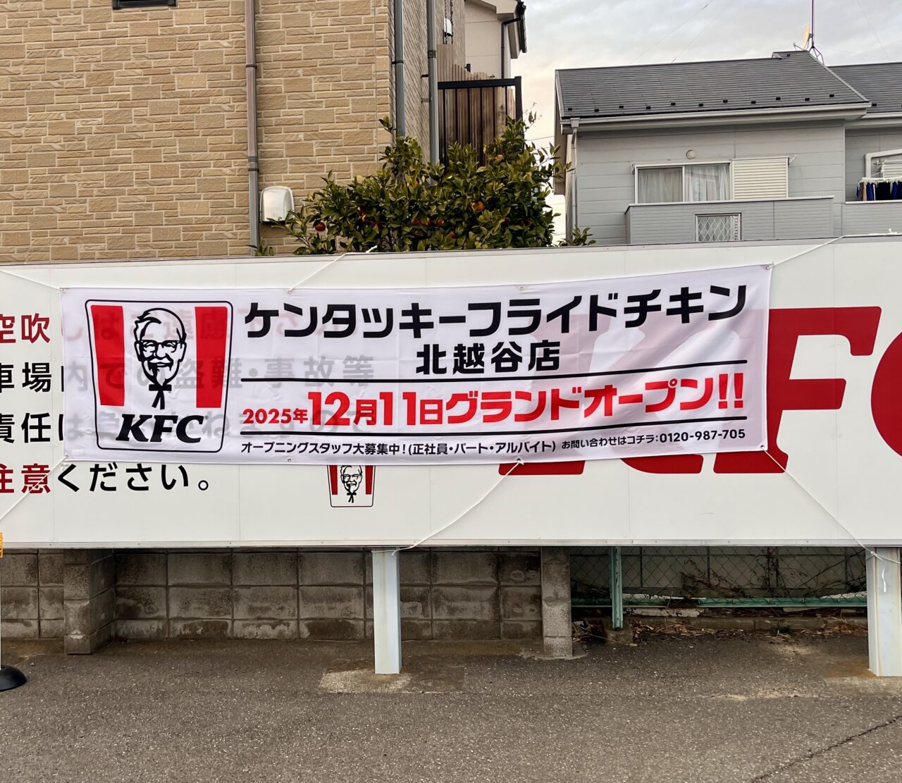 越谷市大房の足立越谷線沿いに「ケンタッキーフライドチキン 北越谷店」が2025年12月11日(木)にグランドオープンしました!