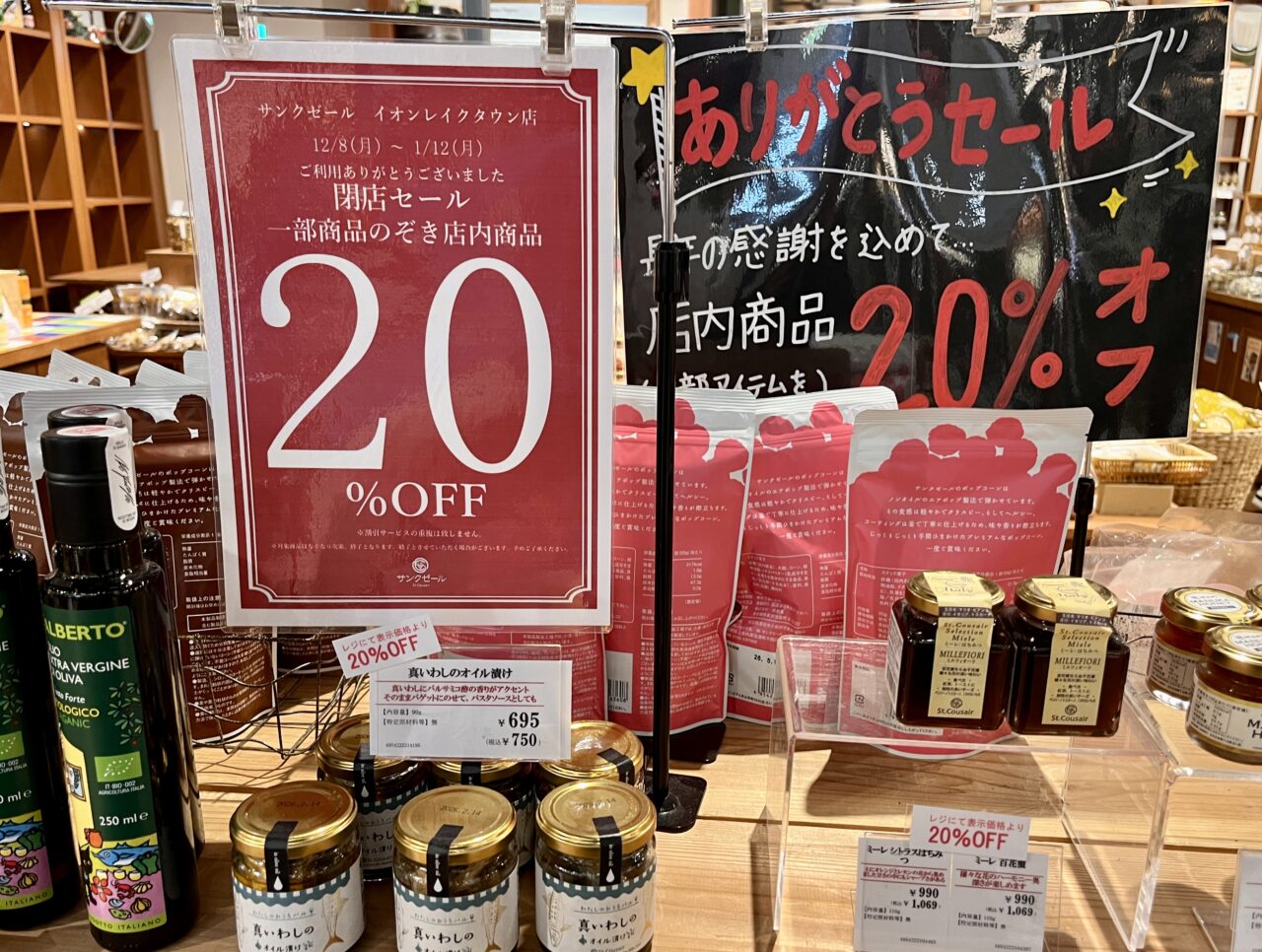 イオンレイクタウンmori1Fにある自然豊かな信州から生まれた食ブランド店「サンクゼール」が閉店となってしまいます。