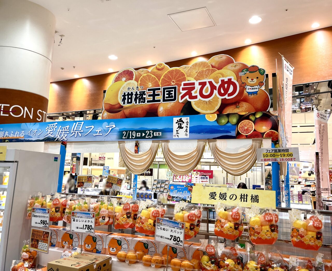 柑橘類をはじめとした海産品やご当地スイーツなどが集結した「第10回 イオン愛媛県フェア」で愛媛県の魅力を感じてみてはいかがでしょうか♪