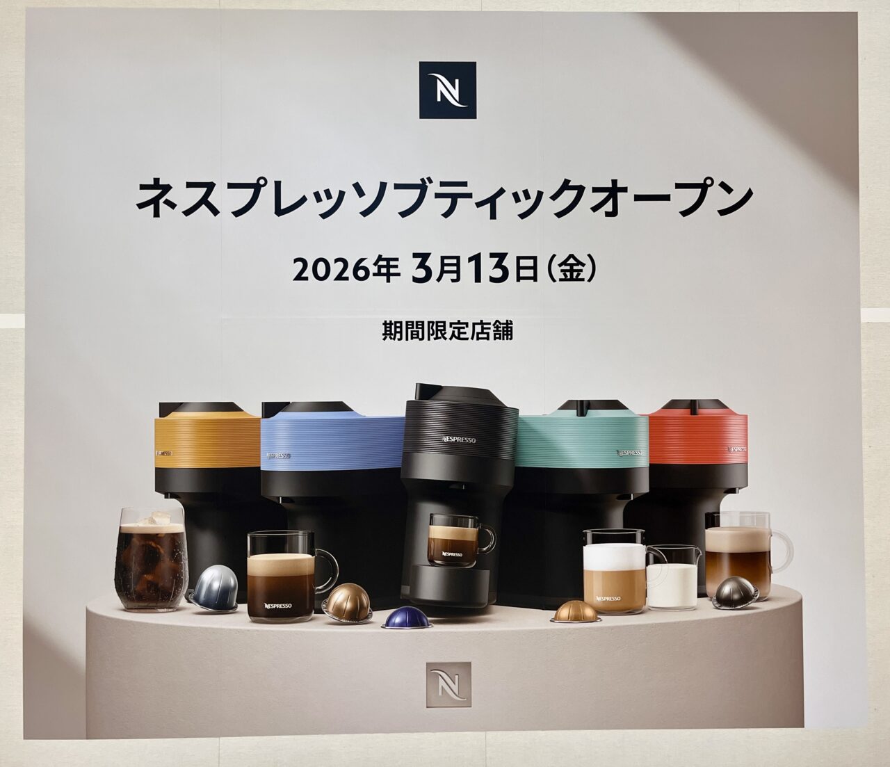 2026年3月13日(金)、スペシャルティコーヒーを体験することができる「ネスプレッソブティック」が、イオンレイクタウンmori1階にオープンするようです!